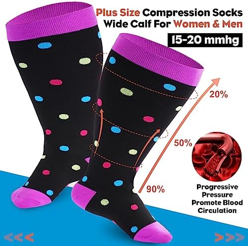 Plus Size Compression Socks for Women & Men Wide Calf 15-20 mmhg Knee High Support Socks for Running