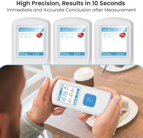 【Large Storage Capacity】The ekg monitor is equipped with color screen and built-in memory to store up to 99 readings in the device.Working independently without real-time connection to a smartphone.