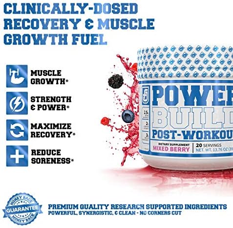 POWERBUILD Clinically-Dosed Post Workout Recovery & Muscle Building Supplement – Boost Muscle Growth, Recovery, & Strength – Creatine, Glutamine, & 5 More Powerful Ingredients – Mixed Berry Blast 13.76 Oz