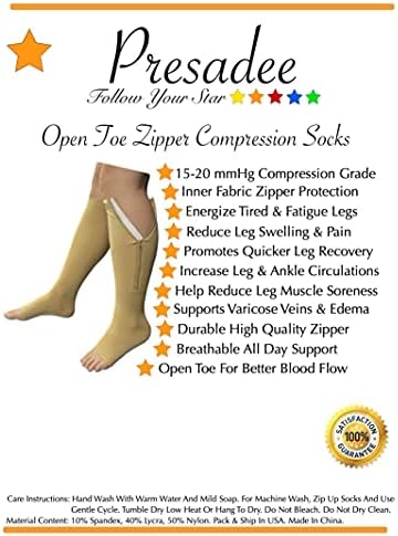 Presadee 15-20 mmHg Open Toe Zipper Compression Socks