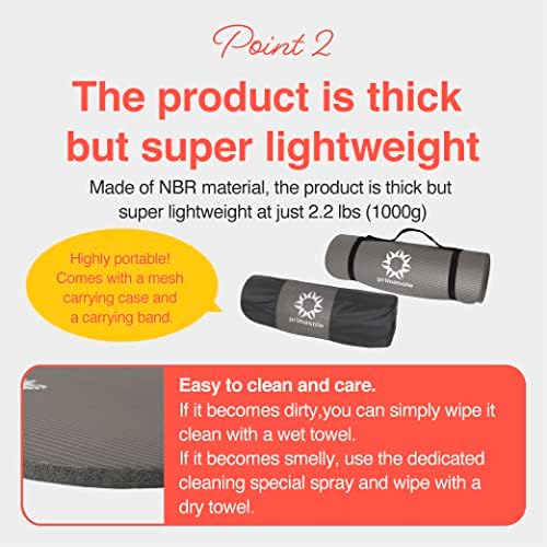 【SIZE & LIGHTWEIGHT】: Mats Size is 72 × 24 inches. Super light weight is only 1.8 lbs. ½ extra thick (10㎜) extra cushion provides comfort stability and Posing. Perfect mats for hard floor or carpet at home and gym. It is more suitable for people with sensitive or injured joints. NBR Material is a non-toxic synthetic rubber material and provide soft, cushioning. 72 inch is large enough to do most of exercises