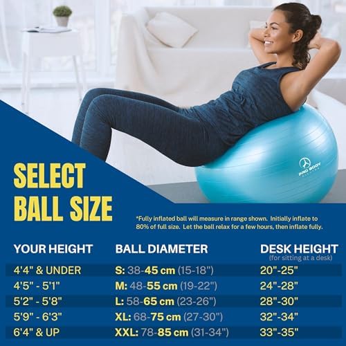 ProBody Pilates Ball Exercise Ball Yoga Ball, Multiple Sizes Stability Ball Chair, Large Gym Grade Birthing Ball for Pregnancy, Fitness, Balance, Workout and Physical Therapy w/Pump