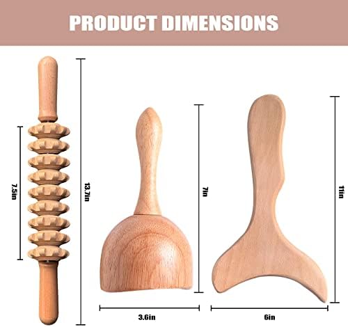 Professional Wood Therapy Massage Tools 3-in-1 Maderoterapia Kit Wooden Massager,For Body Shaping / Contouring / Cellulite Reduction / Muscle Pain Relief Wooden Tools ,Lymphatic Drainage Massager