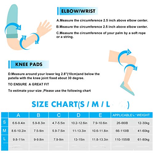 ✦【 MORE SIZE GUIDELINES TO CHOOSE】🛴 Here are S/M/L three sizes – 2 knee pads, 2 elbow pads and 2 wrist guards. You can choose a method to suit your lifestyle according to the SIZE GUIDE in THE IMAGE.