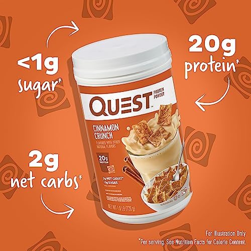 Quest Nutrition Cinnamon Crunch Protein Powder, 20g Protein, 2g Net Carb, 1g Sugar, Low Carb, Gluten Free, 1.6 Pound, 24 Servings