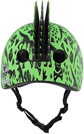The Raskullz Af1 LED helmet has a light-up 3D fin Hawk! five LED lights illuminate the rubber mohawk with a steady light, or a flashing sequence. The lights are activated by a button located on the back of the helmet and will automatically turn off if left on. Recommended for ages 5-8 years old with heads measuring 50-54cm.