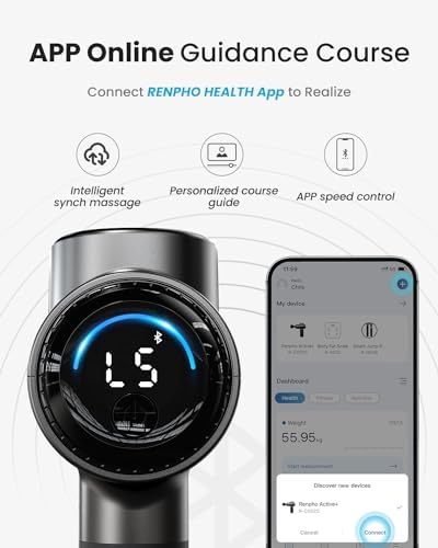 RENPHO Massage Gun Deep Tissue with Bluetooth, Active Percussion Muscle Massage Gun for Athletes, Powerful Portable Electric Handheld Massager Gun, LED Touch Display, Carry Case