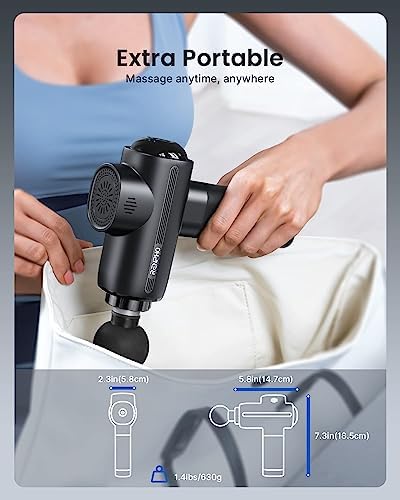 Up to 3200rpm(5 speeds) & Super-quiet design – 5 speeds from 1800 to 3200rpm are provided for different muscle groups, aiding in sore muscle massage, relaxing and shaping different muscle parts; 40dB to blend in with ambient sounds, the percussion massage gun offers you an enjoyable and quiet massage experience