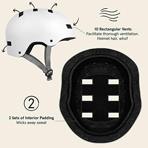 VENTILATION: The classic skate design helmet with 10 vents to keep you cool and comfortable for a casual ride or a long day on your board. Dewcollector interior padding technology wicks away sweat, stench, and bacteria, keeping you dry and irritation-free.