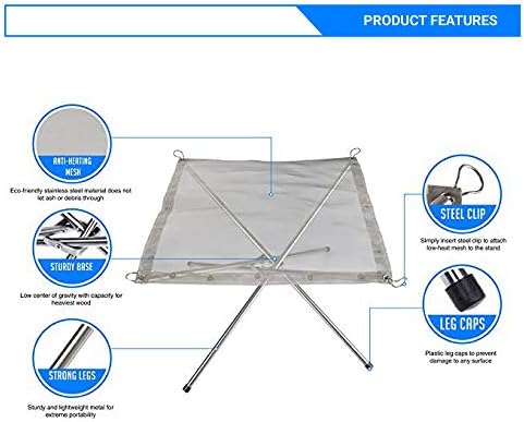 DURABLE: This firepit has the capability to hold enough wood for fires of all sizes. With netting constructed out of eco-friendly stainless steel and anti-heating material. The meticulously woven steel net limits ash and debris from slipping through, making for a good time with easy cleanup.