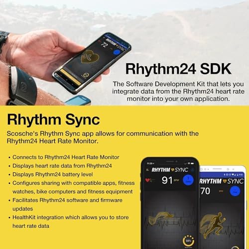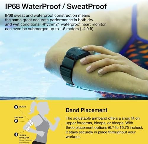 Scosche Rhythm 24 Heart Rate Monitor Armband – Fitness Armband with Dual Band ANT+ & BLE Bluetooth – Waterproof & Dustproof Accurate Heart Rate Monitors with Built-in Memory for Storing Workout Data