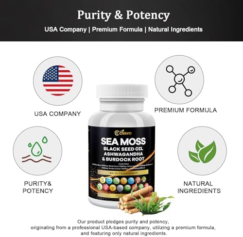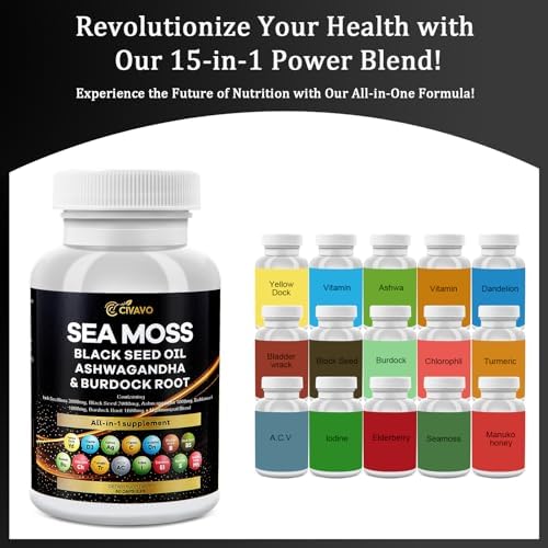 The Ultimate Sea Moss and Black Seed Capsules – Civavo MultiMineral combines 6 full-dose products in one convenient supplement, including Irish Sea Moss Powder, Black Seed Powder, Ashwagandha Extract, and Burdock Root Powder.