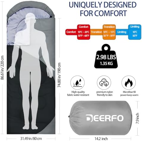 GREAT FOR ALL SEASONS – Our camping sleeping bags are designed to give you a good night’s sleep. Ideal for spring, summer, fall and winter, rated from 50°F to 68°F. Stay comfortable and warm in any condition at normal altitude. Can be used for any outdoor adventure, class camping, summer camps, couch surfing, indoor blanket and as an emergency blanket for vehicles.
