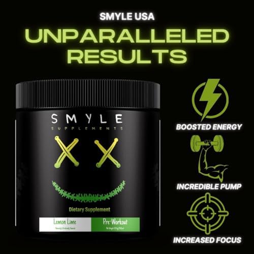 Smyle USA Pre-Workout Powder Lemon Lime – Pre Workout Energy with 400mg Alpha GPC + 167mg Caffeine and 1667mg Beta-Alanine Performance Blend | 30 Servings