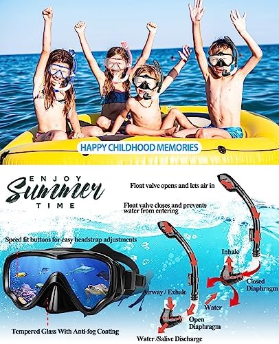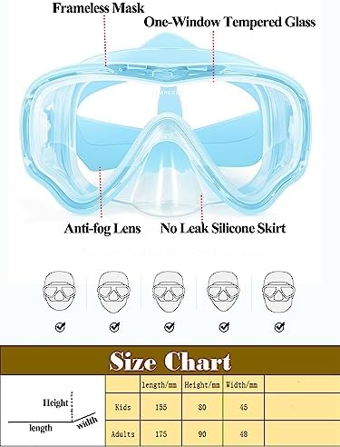 Perfect Fit & No Leaking – Adjustable elastic silicone strap help to fit your face snugly and the improved mask will fit different face shapes well including men, women, teenagers and so on. This mask has a very soft liquid silicone skirt, reduces face water pressure, seals on your face well without worrying about water leakage