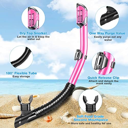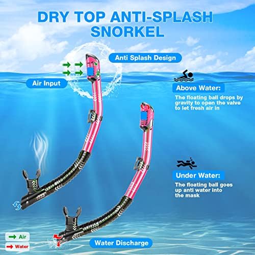 🤿 【 IDEAL SNORKELING SET FOR TRAVEL 】 The perfect adults snorkel set for your vacation. The adult dry snorkeling set come with a mesh bag that you can easily store and transport. The bag also had breathable holes so everything could dry. You can saved time and money on renting them while on your trip.