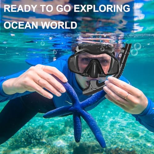 Snorkeling Gear for Adults,Mask Fins Snorkel Set,Panoramic View Diving Mask Anti-Fog,Dry Top Snorkel,Dive Flippers and Travel Bag for Swimming,Snorkeling Diving