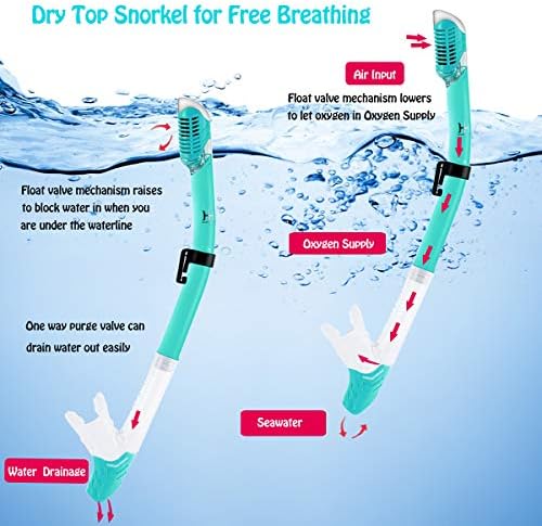 ❥FOOD GRADE SOFT SILICONE, SAFE & DURABLE❥ The characteristics of this material are: safety, environmental protection, heat resistance, aging resistance. So it makes this kids snorkeling gear more safe for skin, make this snorkel mask has a longer lifespan and really comfortable when wearing