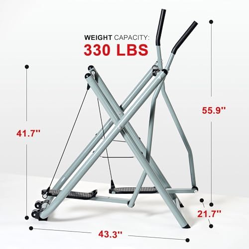 soges Air Walk Trainer for Full Body Workout, Low Impact Elliptical Glider Machine with Monitor for Home Gym, No Hurt to Knees Exercise Machine Supports 330 lbs, Silver and Black