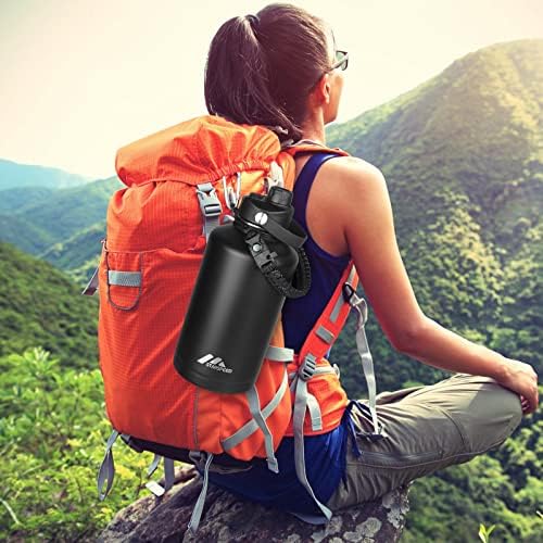 StarSpeed 64 oz Insulated Water Bottle with Straw Lid, Stainless Steel Half Gallon Water Flask Double Walled Vacuum Water Jug, Wide Mouth Sports Thermo Mug with Paracord Handle for Hot & Cold Liquid