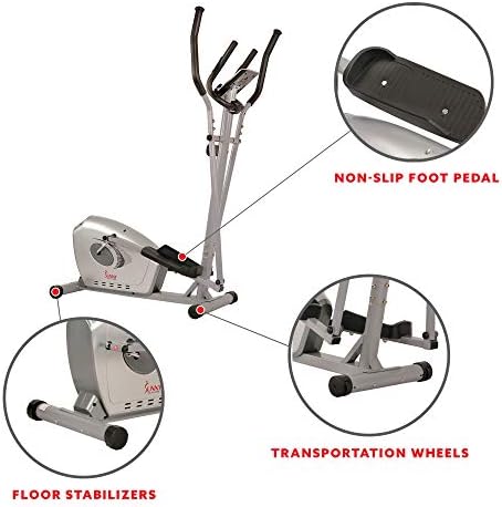 Sunny Health & Fitness Magnetic Elliptical Cross-Trainer with Digital Monitor, Low Impact Workout, and Pulse Sensors – SF-E3607