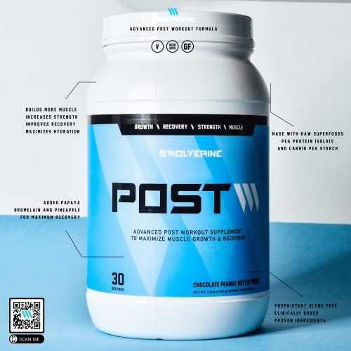Swolverine Post | Post Workout Recovery and Muscle Building Formula, Pea Protein Isolate, Pea Starch Carb10, L-Glutamine, Coconut Water (Chocolate Peanut Butter, 30 Servings)