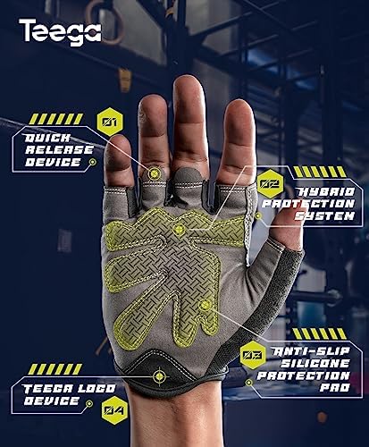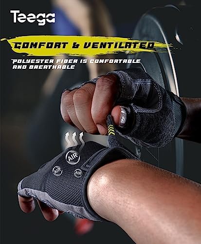 Teega Lightweight Workout Gloves for Men and Women, Weight Lifting Shorty Fingerless with Cushion Pads and Silicone, Fitness, Training, Cycling, Gym