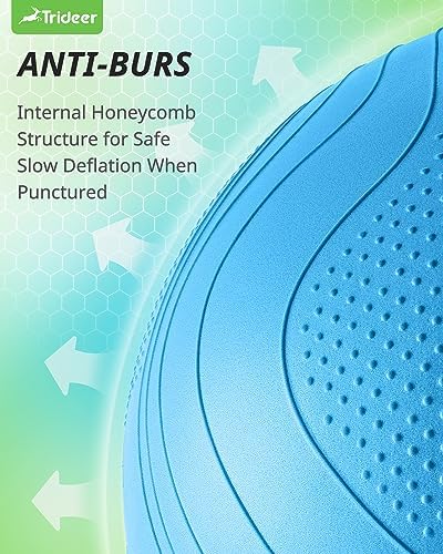 【Revolutionary Honeycomb Structure for Safety】The Trideer Exercise Ball boasts of fabulous resilience and a high weight capacity of 330lbs. It can easily withstand high impact exercises. The honeycomb structure produced using the top-notch foaming technology allows the ball to deflate slowly enough to ensure the safety of you and your family during use when it is accidentally punctured by pointy objects.