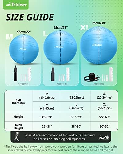【Risk-Free Purchase & Lifetime Customer Service】Please do not hesitate to contact us if you have any question or issue. If you are not satisfied with your purchase of the Trideer Exercise Ball, we will provide a full refund or replacement for free, with a smile and a warm thank you! We will go out of our way to take care of your problem within 24 hours.