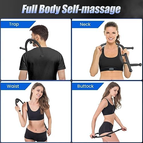 Trigger Point Massage Tool, Shoulder Neck Back Massager Handheld, for Body Deep Tissue & Fibromyalgia Relief, Manual Massage Hook Cane Therapy with Instructions, for Men & Women- Patented (Black)