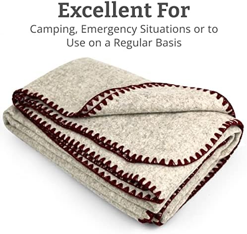 Military Wool Blanket Survival Gear and Equipment – 66 x 90 Inch Mexican Military Gear Camping Blanket – Durable Fire Blanket Ideal for Hunting, Exploring – Soft and Comfortable Design, (Red Stitch Around)