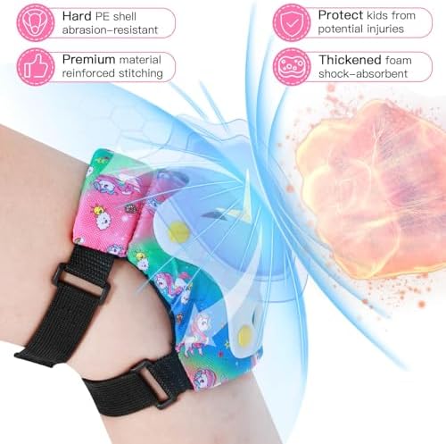🚲【Quality Protective Set】With sturdy ABS shell and shock-absorbing EVA, this kids bicycle helmet are built to last for years. Knee Pads feature breathable foam to give your kids a comfortable wearing.