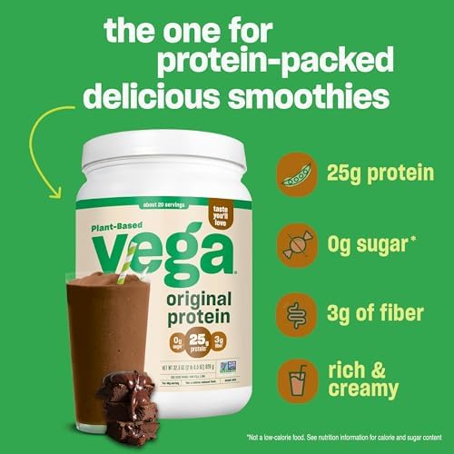 Vega Original Protein Powder, Creamy Chocolate Plant Based Protein Drink Mix for Water, Milk and Smoothies, 32.5 oz