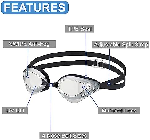 VIEW Swimming Gear V-230ASA Blade Orca SWIPE Racing Swim Goggles, Clear/Dark Silver Mirrored Lens