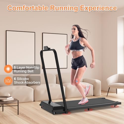🏃Widened Running Belt🏃The 41*15.3 inch running belt provides greater freedom for running or walking on this treadmill. The 5-layer non-slip running belt and silicone column support significantly absorb impact, providing cushioning for the knees, muscles, and joints.