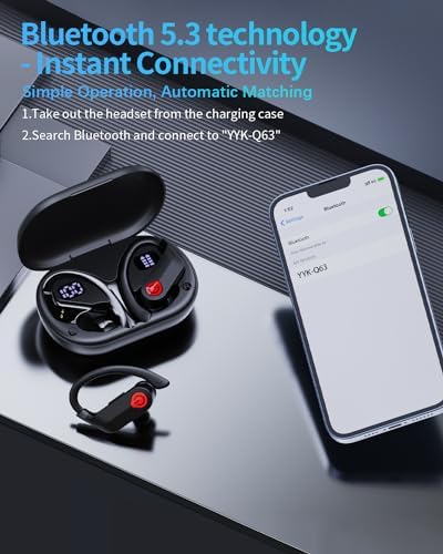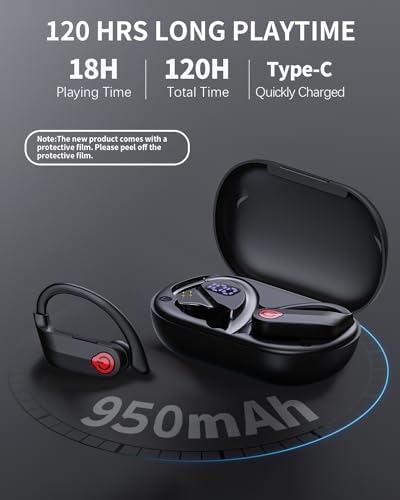 Wireless Earbuds Bluetooth Headphones Sports Over-Ear Bluetooth 5.3 Ear Buds with Earhooks 120H Playtime Wireless Headphones for Workout Waterproof Bluetooth LED Power Display