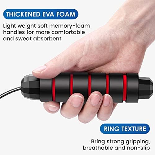 ★【Ergonomically Comfortable Jump Rope Handles】Ergonomically designed handles, which coated with 6 inch soft PVC memory foam that is comfortable, breathable and non-slip to make the jumping rope easy to hold and carry, allowing you to exercise easier and longer.