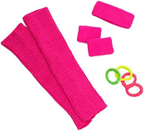 You will be the hit of the party with this fun 80’s accessory kit. Throw it together with some tight leggings, tease up some big hair & you’ve got the perfect look! Perfect ladies costume. SET INCLUDES:✓ Neon Pink Leg Warmers✓ Neon Pink Sweatband✓ Neon Pink Wrist Bands✓ Neon Multicolor Ponytail Holders