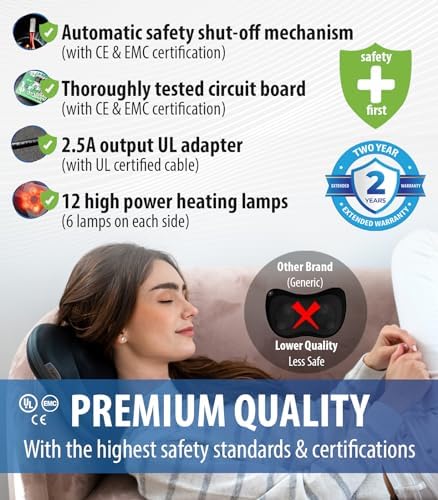 CONVENIENT COMFORT: meticulously designed for your utmost convenience. Experience the bliss of a deep tissue back massage with soothing heat, easing back pain and tension. Please note that it requires a plug-in power source and is not cordless or rechargeable. Delight in a soothing massage at home or in the office with our user-friendly device. It includes a car adapter, perfect for passengers seeking relaxation during travel.