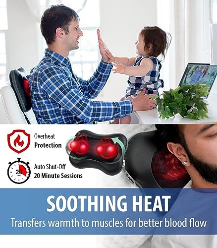 UNMATCHED VERSATILITY & ERGONOMIC DESIGN: the Zyllion back and neck massager is not just for your back but also targets your neck and upper/lower back. Experience the soothing warmth and personalized deep tissue massage. Its ergonomic contouring fits your body perfectly, making it ideal for use in bed, office, car, or anywhere, even as a shoulder massager. Ultimate relaxation and pain relief await with our heated back massager.
