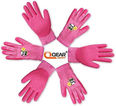 1 Pair Kids 3-6 Years Girl Pink Garden Work Gloves,Knitted Liner,and Latex Rubber Palm Coated for Water/Dirty Resistance (3-6 Years Pink XXXS)