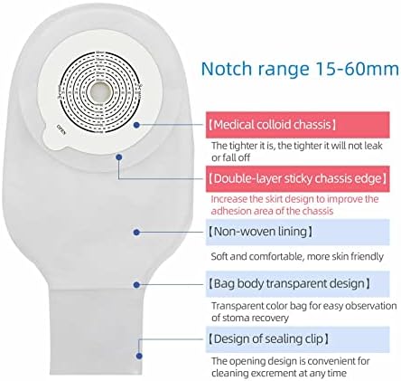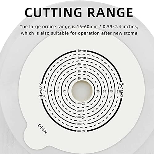 CUT TO FIT–Our colonoscopy bags with cut to fit barrier which apply to the stoma sizes from 0.8inch (20mm) to 2.4 inches (60mm). You can use the stoma aperture measurement board in package to measure your stoma.