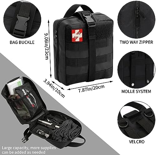 145pcs Emergency Survival First Aid Kit Survival Gear Equipment with Splint Tourniquet for Trauma Wound Care Blow Out Bleeding Control, Black