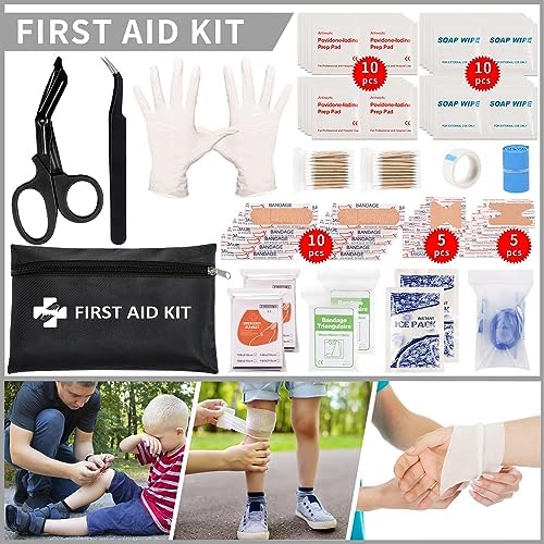 GPUSFAK 145pcs Emergency Survival First Aid Kit Survival Gear Equipment with Splint Tourniquet for Trauma Wound Care Blow Out Bleeding Control, Black