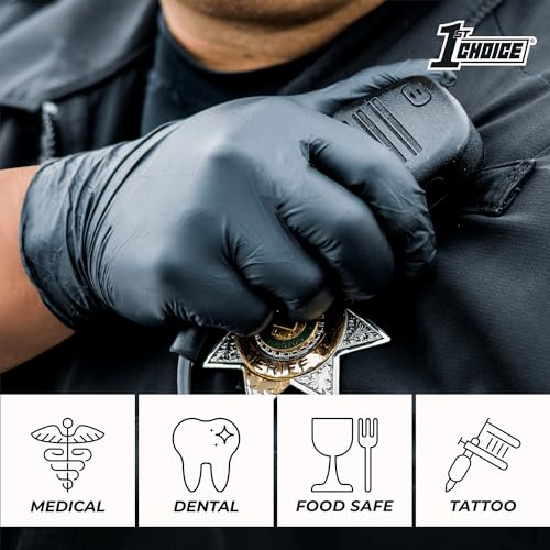LATEX-FREE ALTERNATIVE: 1st Choice nitrile disposable medical gloves are latex free but deliver a comfortable fit and feel rivaling that of natural latex gloves. A perfect addition to every cleaning supplies closet.