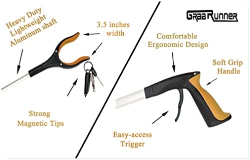 2- Pack 32 inch FDA Registered GrabRunner Folding Reacher Grabber Tool with Magnetic (Yellow/Yellow)