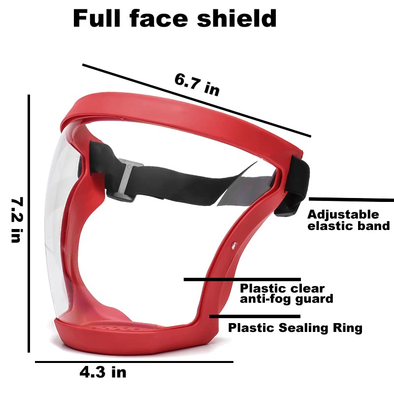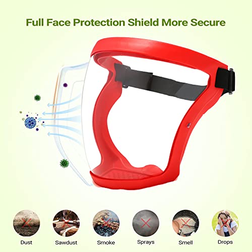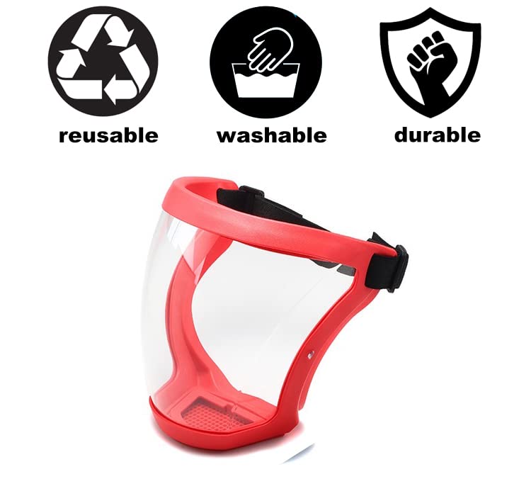 2 Pack Clear Full Safety Face Shield for Adults Women Men, Adjustable & Reusable Super Protective Face Shields with Super Lightweight, High-Definition, Anti-Fog Red