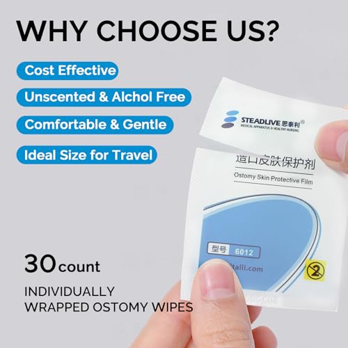 30pcs Skin Barrier Wipes for Ostomy, Individually Wrapped No-Sting Ostomy Skin Film Wipes Skin Prep Protective Wipes Ostomy Supplies (Box of 30 Pieces)