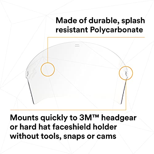 ADAPTABLE: Headgear assembly is designed to fit most hard hats and can be combined with 3M W-Series Faceshields. Durable, versatile, and does not interfere with most cap-mounted earmuffs. This gives users a wide choice of faceshield materials, sizes, shapes, and tints for task specific requirements. The faceshield attaches quickly to any 3M Headgear without tools, snaps, or cams.