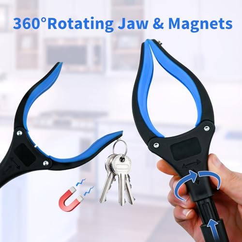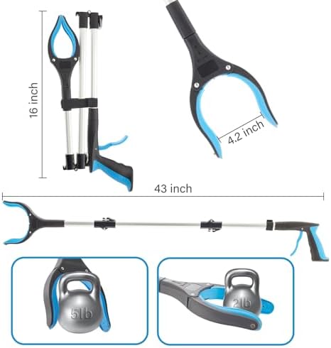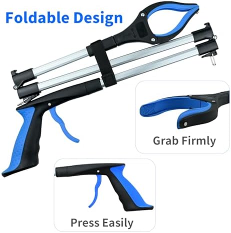 43″ Extra Long Reacher Grabber Tool, Foldable Pickup Tool Heavy Duty Mobility Aid Reaching Assist Tool with Rotating Jaw-2 Pack